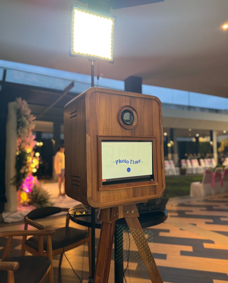 Layanan photobooth yang lebih dinamis di acara wedding mu, dengan fotografer yang aktif mengambil berbagai angle untuk memastikan setiap momen tertangkap sempurna dan berkelas.